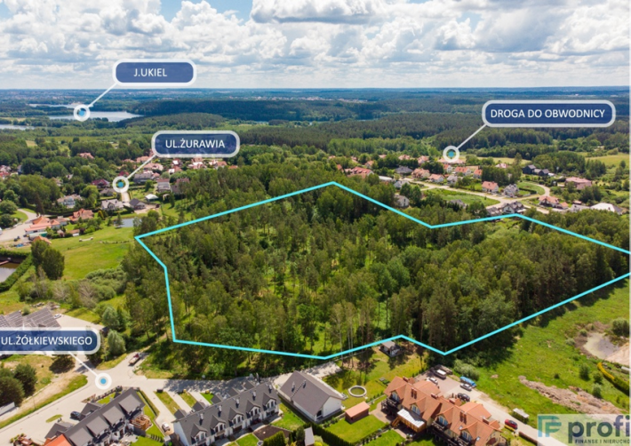 Część działki o przeznaczeniu mieszkaniowym jest położona od ul. Żółkiewskiego. Miejscowy plan pozwala na wydzielenie z niej działek o powierzchni od 900 m2 dla zabudowy wolnostojącej i od 600 m2 dla bliźniaczej. Od południowej i zachodniej strony część mieszkalną otacza teren leśny, skutecznie izolując od sąsiednich zabudowań.