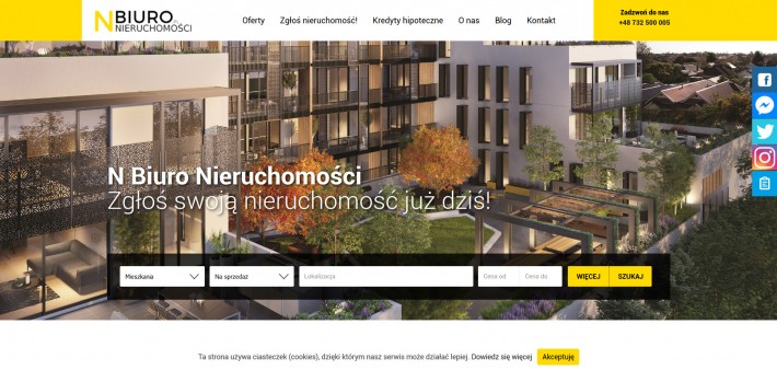 - dopracowana strona internetowa połączona z systemem do zarządzania biurem nieruchomości, prowadzeniem bloga, itp. (MediaRent)