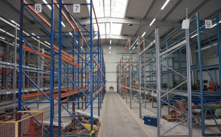1. Dwie hale produkcyjne – około 1830 m2 – każda z oddzielną skrzynką prądową oraz własnym hydrantem. W jednym z pomieszczeń zamontowano suwnicę.