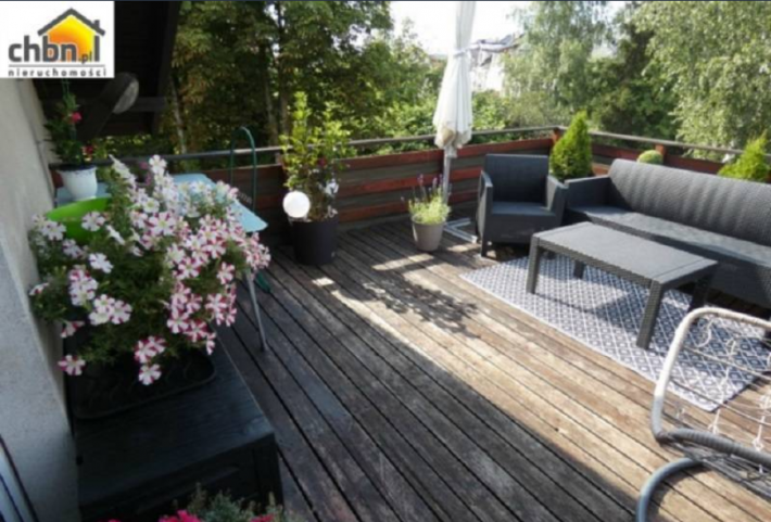 Na piętrze mamy zlokalizowany obszerny apartament (około 130 m2), składający się z czterech sypialni, salonu z otwartym aneksem kuchennym, łazienki oraz pięknym tarasem.
