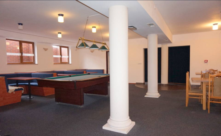 -piwnica: kuchnia główna, zaplecze, chłodnia, sala zabaw(barek, stół bilardowy, kącik dla najmłodszych), rozdzielnia, pralnia, pomieszczenia przeznaczone na siłownię oraz szatnie.