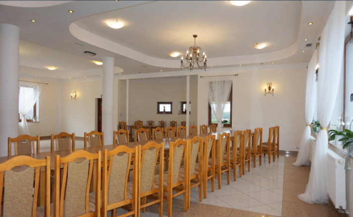 - salę restauracyjną, która w zależności od planowanej imprezy (wesele/sylwester/komunia) pomieści do max.100 osób.
