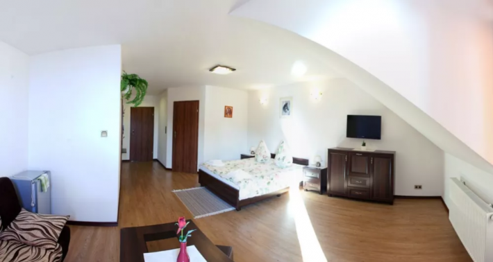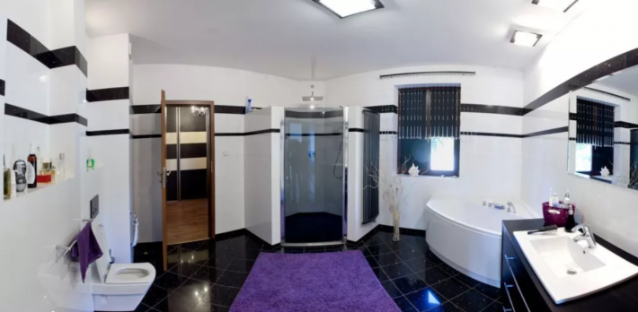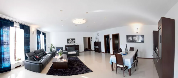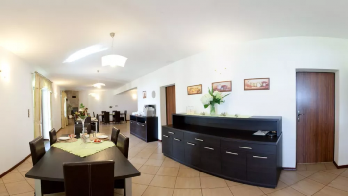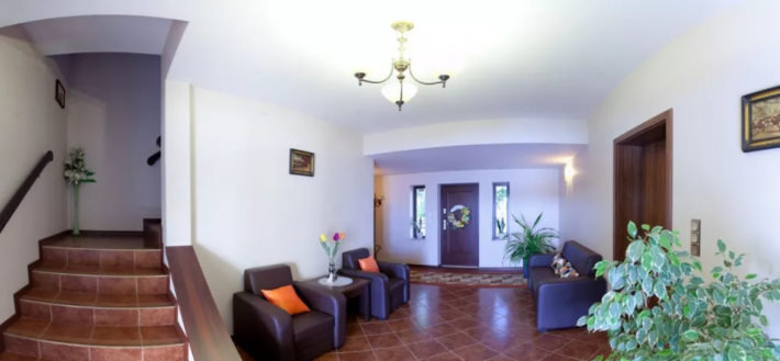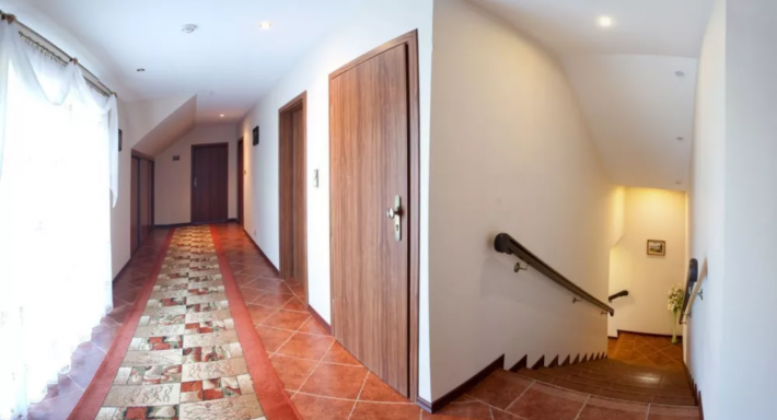 - prawie 800 m2, powierzchni użytkowej, podzielonej na: 7 komfortowych pokoi, o pow. od 23 m2 do 74 m2, wypoczynkowych z łazienkami i tarasami, oraz 1 apartament właścicielski, o pow. 120 m2, oraz kuchnię, jadalnię, pralnię, pomieszczenia gospodarcze oraz halle na każdej kondygnacji,