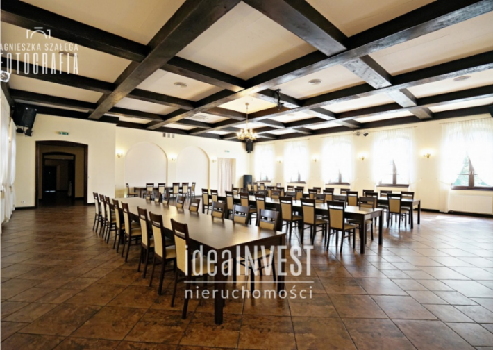- Restauracja z Salą Królewską o pow. 75 m² i pięknym ceglanym kominkiem,