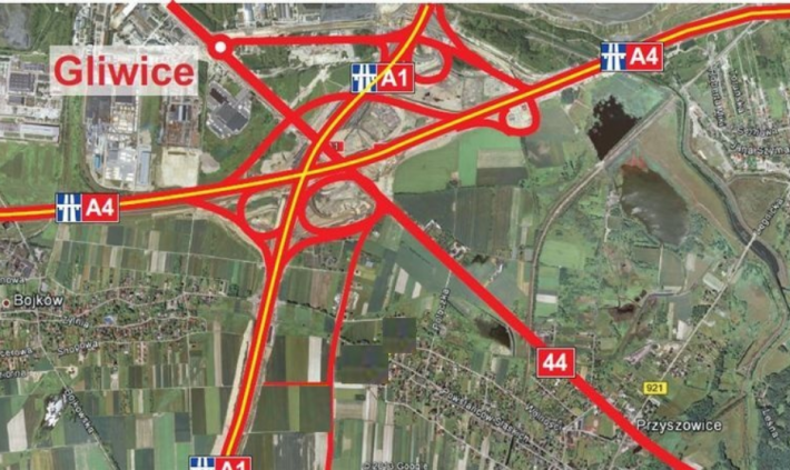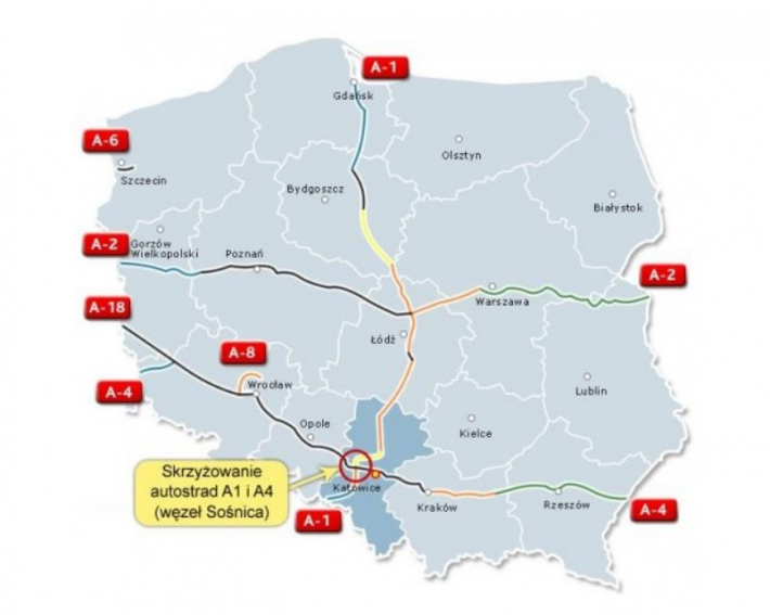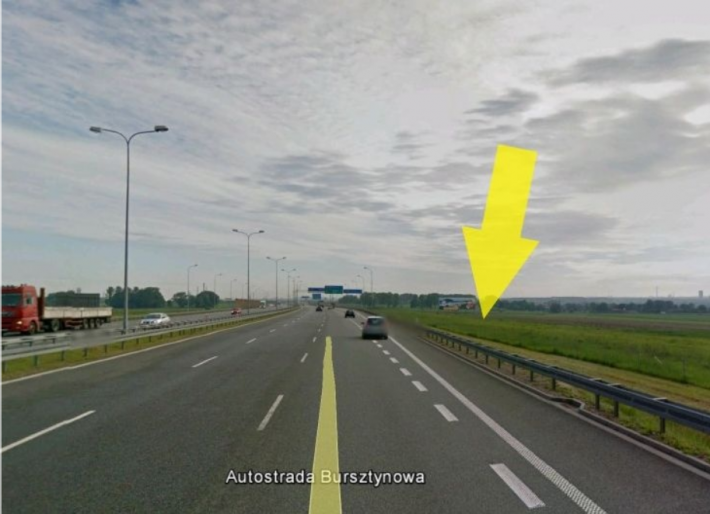 Działka doskonale widoczna a autostrady A1 przy węźle Gliwice - Sośnica