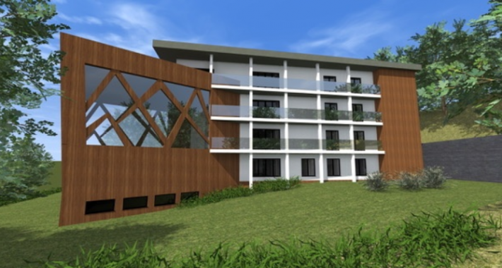 Budynek Ośrodka Wypoczynkowego składa się z 4 kondygnacji:podpiwniczenie, parter, 1 piętro, 2 piętro.