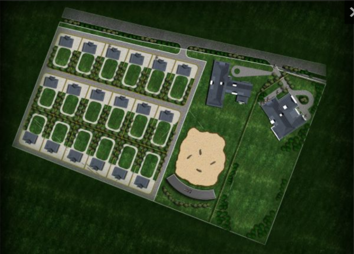 W załączonej wizualizacji koncepcja podziału i sprzedaży przez kupującego części gruntu pod nieuciążliwe działalności gospodarcze (pożądane tego typu grunty w okolicy) gdzie po sprzedaży części gruntu kupujący odzyska całość kosztów zakupu gruntu.