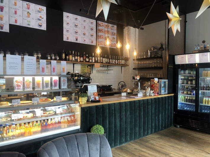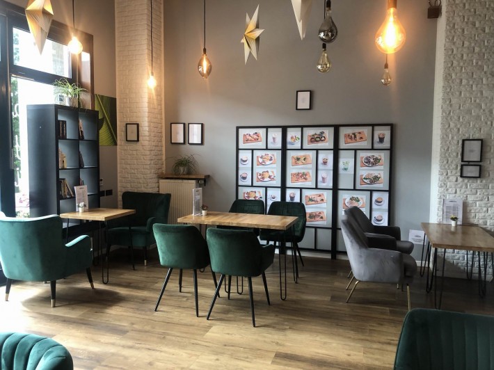 Funkcjonująca kawiarnia (102 m2), kompletnie wyposażona w sprzęt gastronomiczny, zastawę stołową i szkło serwisowe, kasę fiskalną z komputerem do obsługi zamówień, sprzęt do odtwarzania muzyki. Lokal przystosowany do prowadzenia działalności (część kawiarniana – 2 sale, barowa – bar, antresola, przygotowalnia, zmywalnia i zaplecze). Sprzedaż kompleksowa konceptu biznesowego ze spółką w całości udziałów z czynną koncesją na alkohol (ABC) i zgodą Sanepidu. Obecnie w ofercie kawy, herbaty i napary, koktajle, soki i inne napoje zimne, ciasta i desery, przekąski słone i słodkie na ciepło i zimno na każdą porę dnia, napoje alkoholowe: piwa, wina, drinki i szoty. W skład oferty sprzedaży wchodzą receptury do przygotowywania posiłków, napoi ciepłych, zimnych, drinków, aktualna lista zakupowa towarów z kontaktami do dostawców produktów spożywczych, napoi, alkoholi, środków czystościowych i partnerów handlowych.