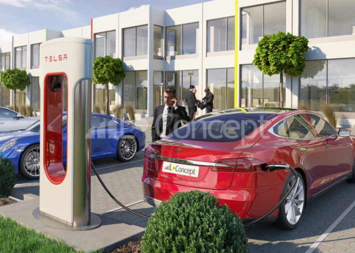 30 stacji ładowania pojazdów elektrycznych + na dachu zaprojektowano panele fotowoltaiczne zapewniające pełną niezależność energetyczną - jako dodatkowa opcja.