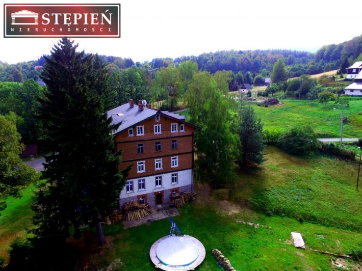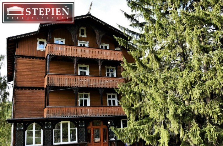 Budynek 5-cio kondygnacyjny, o kubaturze 4100m3, usadowiony na widokowej działce budowlanej o powierzchni: 4982m2. Obiekt w ostatnich latach przeszedł remont i renowację, wykonano 80% prac. W całości odnowiona elewacja z drewna cedrowego ponad 2000m2. Stolarka okienna drewniana.