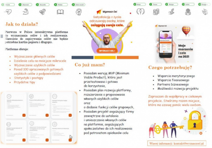 Potrzebuję partnera biznesowego, który pomoże mi dokończyć projekt i wspólnie zbudować platformę do wyznaczania celów online. Szczegóły w załączniku.