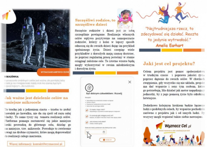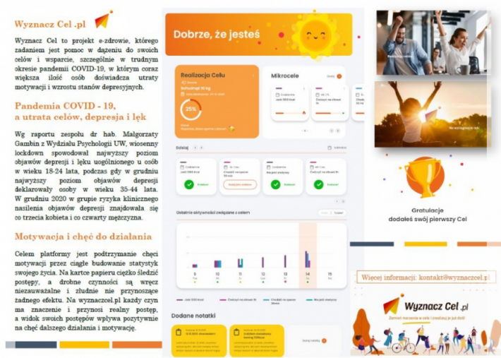 Wyznacz Cel to projekt e-zdrowie, którego zadaniem jest pomoc w dążeniu do swoich celów i wsparcie, szczególnie w trudnym okresie pandemii Covid-19, w którym coraz większa ilość osób doświadcza utraty motywacji i wzrostu stanów depresyjnych.