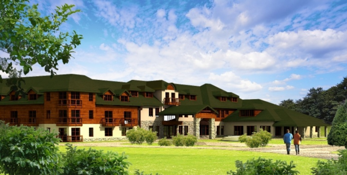Budynek o konstrukcji mieszanej, o 2– 3 kondygnacjach nadziemnych z poddaszem użytkowym, częściowo podpiwniczonym, wykonany w technologii tradycyjnej. Budynek wydzielonymi częściami: główną wejściową, hotelową (148 miejsc noclegowych), restauracyjno-konferencyjną, basen i sauny, pomieszczenia rehabilitacyjne oraz pomieszczenia techniczne i gospodarcze. Cały teren 2,6ha posiada ogrodzenie metalowe na podmurówce betonowej.