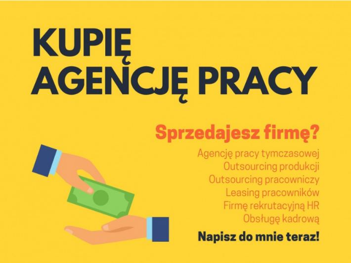 Kupię agencję pracy tymczasowej Kupię agencję outsourcing produkcji leasing pracowników firma rekrutacyjna HR agencja pracy praca tymczasowa Agencja Pracy Tymczasowej