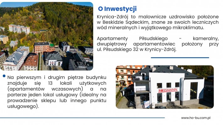 Apartamenty Piłsudskiego - kameralny, dwupiętrowy apartamentowiec położony przy ul. Piłsudskiego 32 w Krynicy-Zdrój.