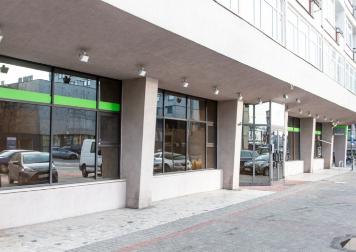 Lokal o powierzchni użytkowej 331m2 (+ 43,7.m2 piwnic), znajdujący się na parterze z wejściem bezpośrednio z ulicy oraz dużymi witrynami, zlokalizowany w modernistycznym budynku z cegły, wybudowanym w roku 1960.