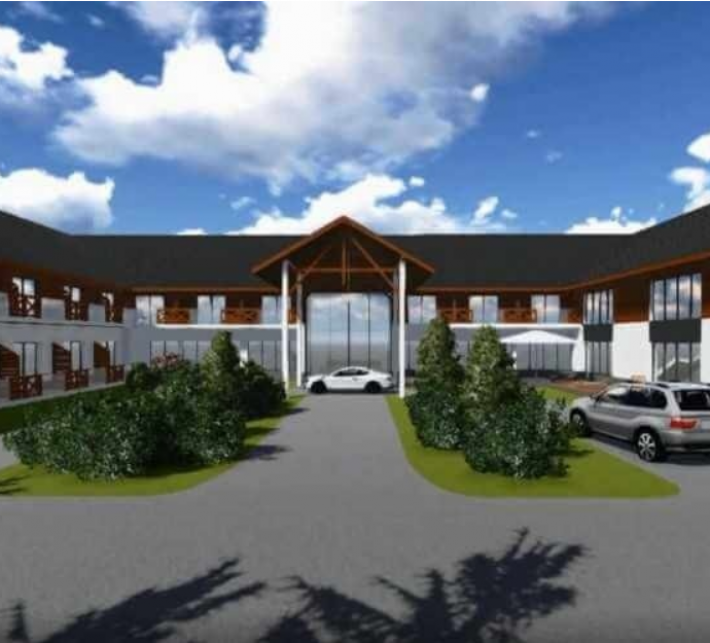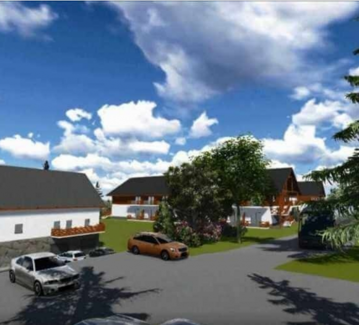 Projekt zakłada możliwość budowy etapowej, w pierwszej kolejności salę, recepcję, zaplecze gastronomiczne, socjalne i kilka pokoi na pierwszym piętrze. Etap drugi to budowa dalszej części pokoi hotelowych, apartamentów w budynku mieszkalnym na drugim piętrze. Aktualnie zostały wykonane nasypy tarasowe pod przyszły parking. Pozwolenie na budowę wydano 09.05.2019 roku.
