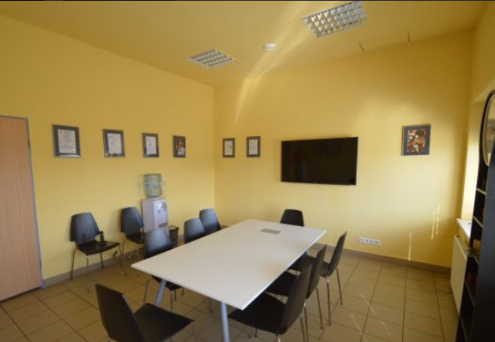 W części biurowej na powierzchni ok. 320 m2 znajduje się biuro zarządu, sekretariat, sala konferencyjna, duża sala sprzedaży, aneks kuchenny i zaplecze sanitarne. Budynek jest w bardzo dobrym stanie i posiada wszystkie niezbędne instalacje w tym: centralne ogrzewanie z własną kotłownią na olej opałowy, klimatyzacja oraz instalacja alarmowa i monitoring. Przed biurowcem znajduje się obszerny parking z kilkudziesięcioma miejscami parkingowymi i placem manewrowym, po którym mogą się swobodnie poruszać duże samochody ciężarowe. Cały teren jest ogrodzony i wyłożony płytami betonowymi. Następnie mamy część produkcyjno - magazynową o powierzchni ok. 600 m2 w trzech modułach po 200 m2.