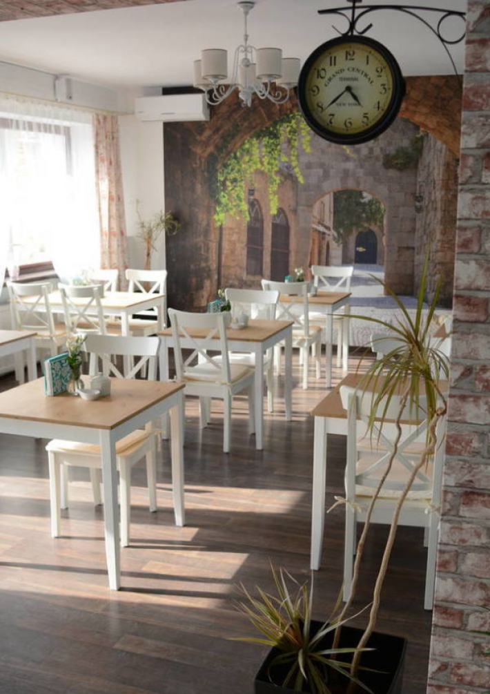 Powierzchnia całkowita to 140 m2, 80m2 to powierzchnia dwóch sal, jedna z barem robionym na zamówienie. Pozostała powierzchnia to zaplecze gospodarcze (kuchnia, zmywalnia, magazyn oraz pomieszczenie do obróbki warzyw).