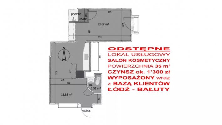 Cena miesięczna najmu lokalu to +-1300 zł brutto z mediami.
