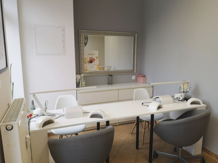 1. Recepcja + poczekalnia + 2 stanowiska do manicure