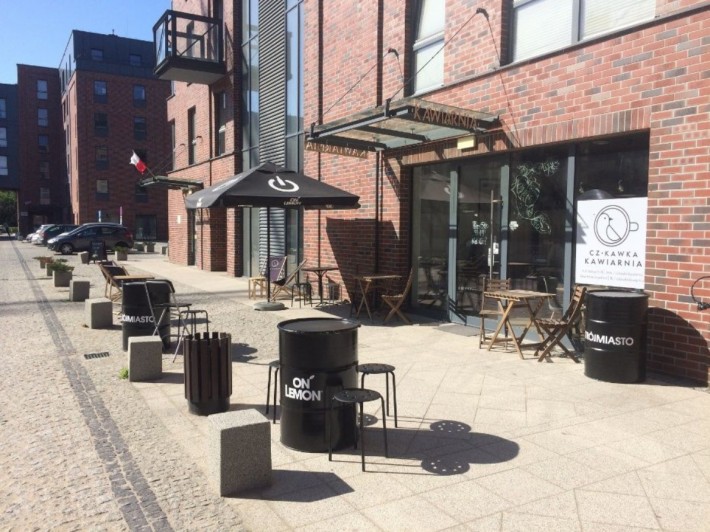Kawiarnia znajduje się na nowo powstałym osiedlu Browar Gdański. Powierzchnia 43 m2, przystępny czynsz. Lokal w pełni wyposażony: meble, ekspres, młynek do kawy, lodówka magazynowa, lodówka podblatowa, witryna na ciasta, szafki, szkło, porcelana, blender, wyciskarka do cytrusów oraz sokowirówka, opiekacz do kanapek, akcesoria do alternatywnych metod parzenia kawy, czajnik i wiele, wiele innych oraz całe zaplecze przystosowane do pracy i wszystko co niezbędne dla gości.