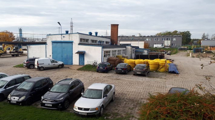 5. Własne zaplecze o pow. 1,5 ha obejmujące Biurowiec, hurtownię, warsztat, place składowe i postojowe