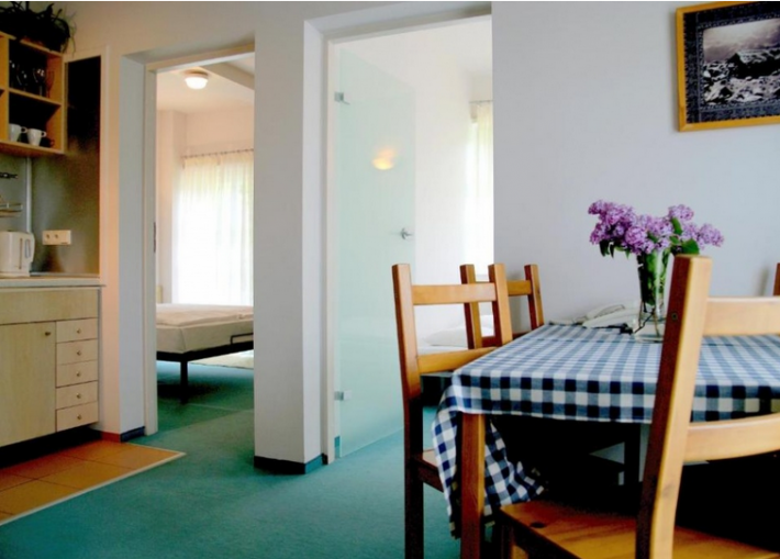 Do dyspozycji gości jest 12 bardzo funkcjonalnych apartamentów, o różnych wielkościach. Każdy z nich wyposażony jest co najmniej w jedną sypialnię, salonik, łazienkę z kabiną prysznicową oraz aneks kuchenny z pełnym wyposażeniem. Większość z apartamentów posiada duży balkon z pięknym widokiem na Tatry.