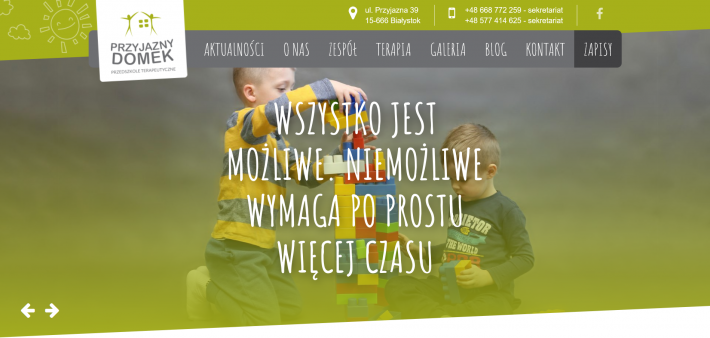 Advertisement: Placówka terapeutyczna - przedszkole - Przyjazny domek is archived because the advertiser did not renew it. At the moment, there is no way to contact the advertiser. Leave your email address if you want to be notified when the advertisement is activated.