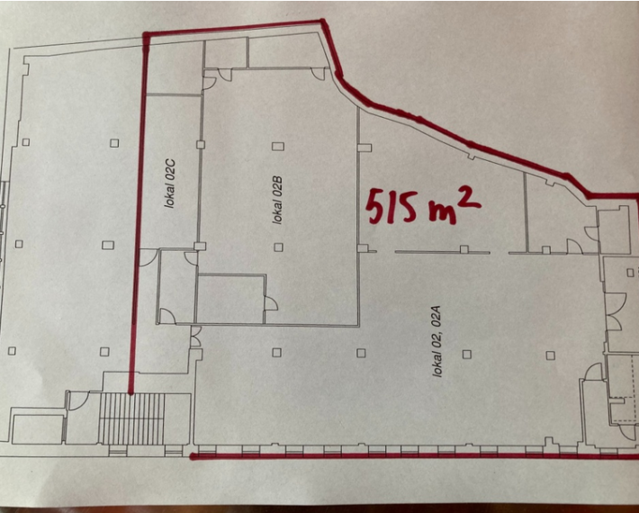 Powierzchnia 515m2 może zostać wykorzystana na biura, usługi lub gastronomię.