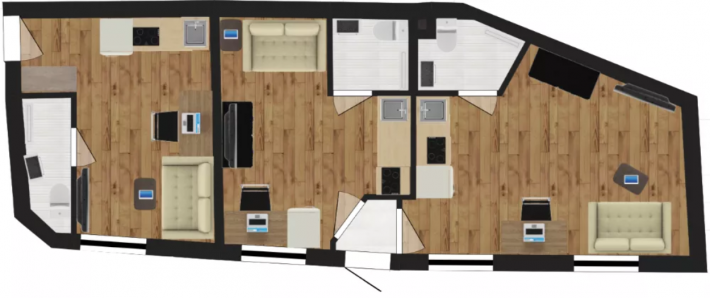 Obiekt składający się z trzech kawalerek, które zostaną wynajęte w danych kwotach: