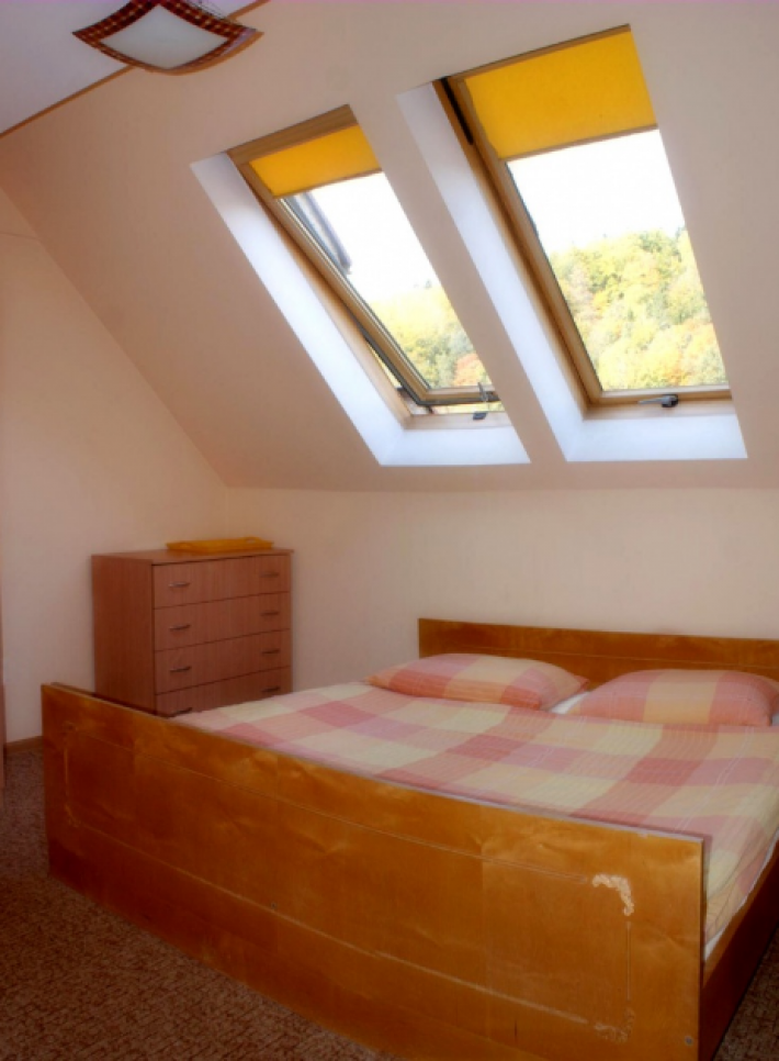 Z tego poziomu można wejść na poddasze, gdzie znajdują się pomieszczenia pomocnicze.