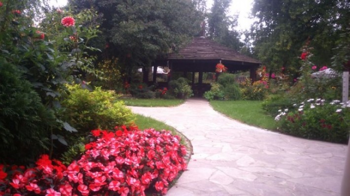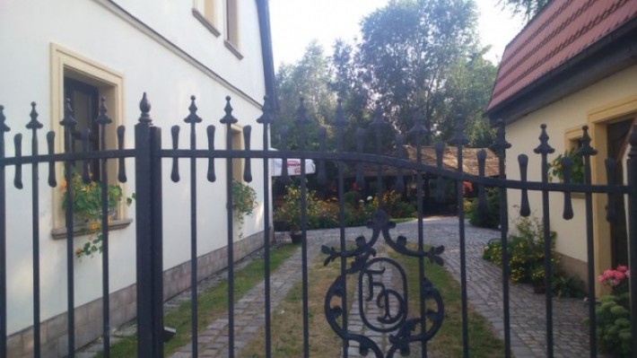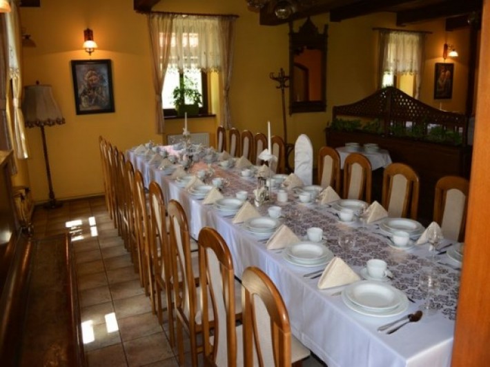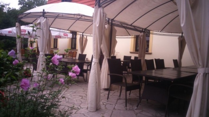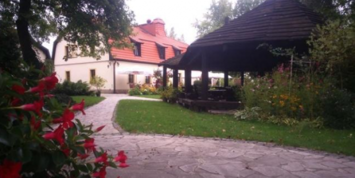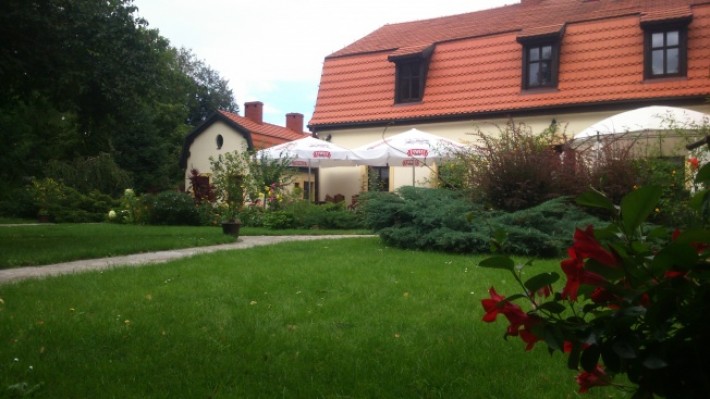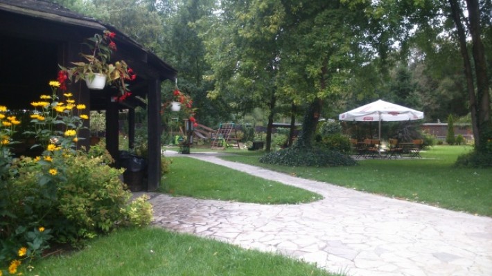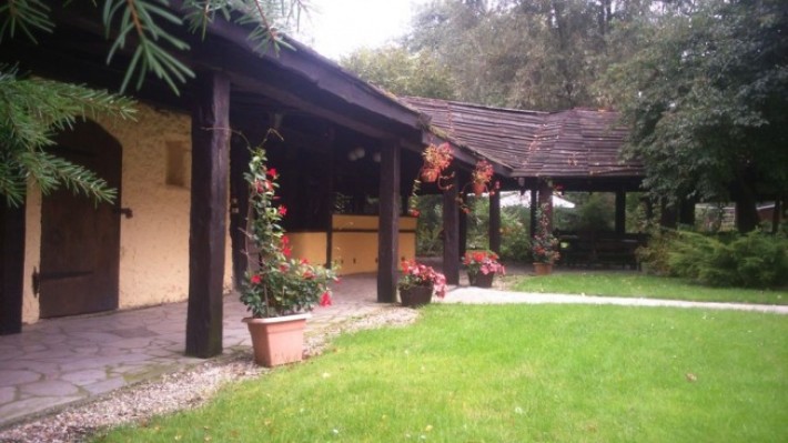 Obiekt posadowiony jest na działce ponad 3300 m2, a na niej dodatkowe budynki zaplecza i uroczy, parkowo-sielankowy ogród, jakim nie dysponuje żaden podobny obiekt w okolicy. Do dyspozycji taras letni, okazały bar ogrodowy, duży grill, zadaszone miejsca konsumpcyjne, scena muzyczna, a dla naszej kuchni także zewnętrzna wędzarnia i piec chlebowy. Na terenie do wykorzystania również stajnie na kilkanaście koni. Na posesji własna studnia głębinowa. Przy obiekcie duży parking na kilkadziesiąt samochodów.