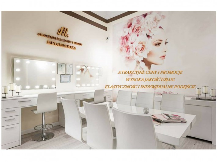 2) strefa makijażu i fryzur z miejscem do szkoleń i warsztatów