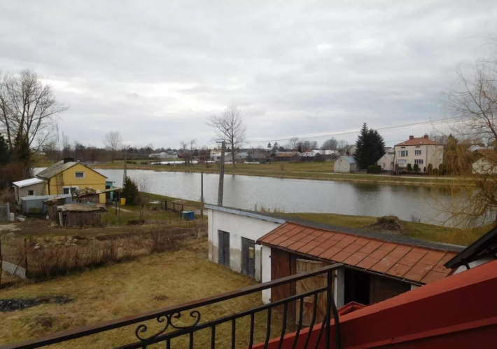 Budynek znajduje się na ogrodzonej i częściowo wybrukowanej działce o powierzchni 11,17 ara, bezpośrednio przy zbiorniku wodnym.