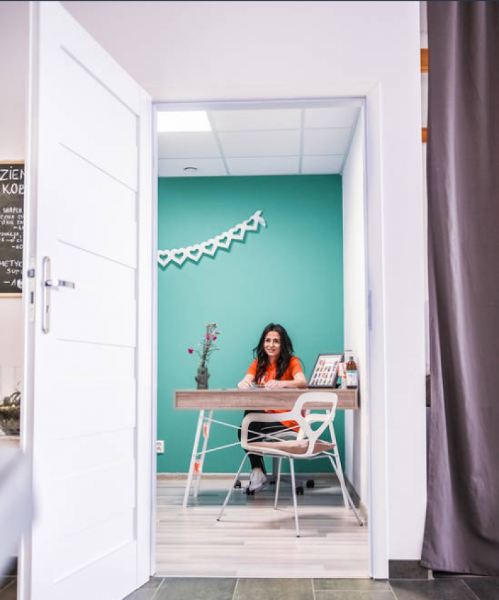Wyposażony gabinet kosmetologiczny. Stanowisko do Manicure oraz Pedicure. Profesjonalne łóżko, lampa, fotel, meble, urządzenia, lakiery Semilac/30 szt, wszystkie prod. pielęgnacyjne i zabiegowe.