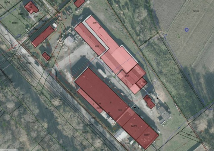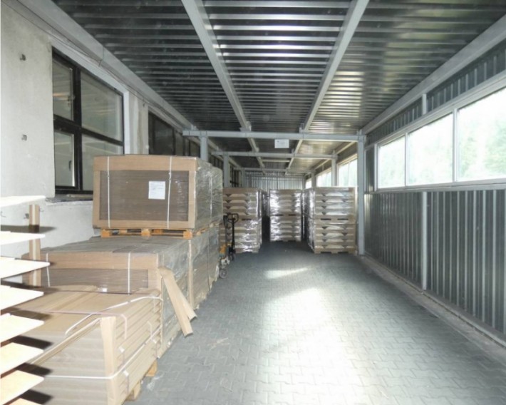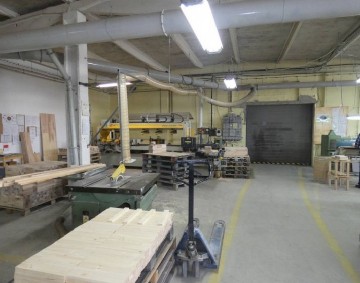 Zabudowa: pomieszczenia administracyjne, hala produkcyjna, suszarnie do drewna (jednorazowy wsad 100 m3), wiaty magazynowe.