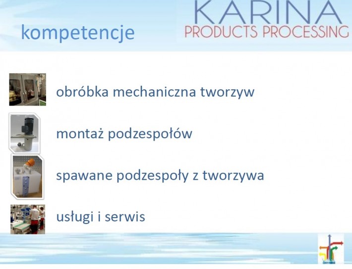 Wykonywane podzespoły to wanny procesowe, korpusy, korpusy filtrów i pomp z tworzyw, slizgi maszynowe części frezowane i toczone