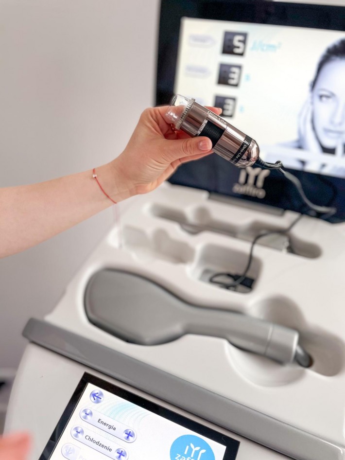 - IPL + RF do wykonywania zabiegów foto- depilacji, fotoodmładzania, usuwania, przebarwień, redukcji trądziku, zamykania naczynek oraz ujędrniania skóry falami radiowymi