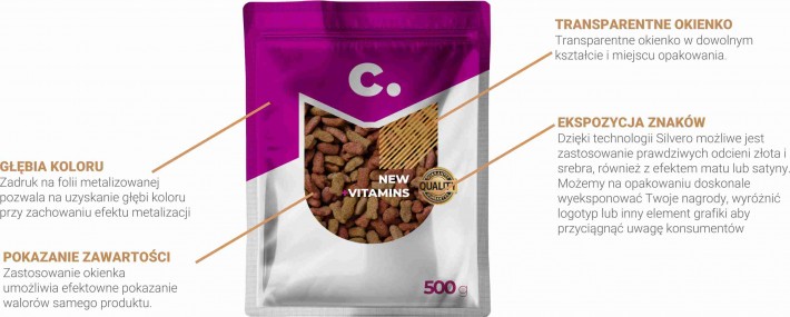 Technologia ta pozwala na uatrakcyjnienie opakowań, wyróżnienie ich na rynku nadając produktom charakteru premium. Jej kluczowe wyróżniki to głębokie barwy, metaliczne kolory oraz transparentne „okienko” w dowolnym miejscu i kształcie.