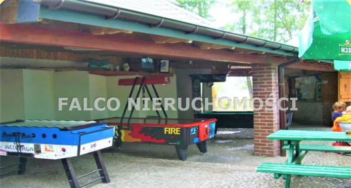 Obiekt przeznaczony jest na prowadzenie działalności handlowo-gastronomicznej, może być również jako rekreacyjny. Posiada dwie sale, większa i mniejszą, 6 pokoi gościnnych oraz balkon z widokiem na jezioro. Większa z sal znakomicie nadaje się na prowadzenie dyskoteki, imprez integracyjnych czy bali sylwestrowych. W budynku znajduje się zaplecze socjalne, kuchenno-magazynowe i bar. Całość ogrodzona, podwórko wyłożone kostką granitową. Istnieje możliwość kupna powyższej nieruchomości wraz z sąsiednią działką o przeznaczeniu pod dział. gosp. o pow. 1.130m² w bardzo atrakcyjnej cenie.