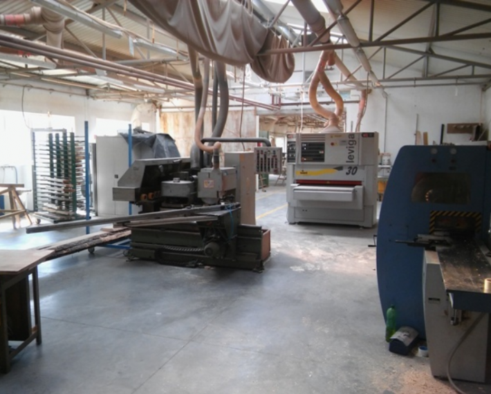 Budynek murowany pokryty blachą stalową ocynkowaną na dźwigarach stalowych. Kotłownia i silos na trociny. Bramy przemysłowe 1szt 5m x5m i 1szt 3m x 3m.