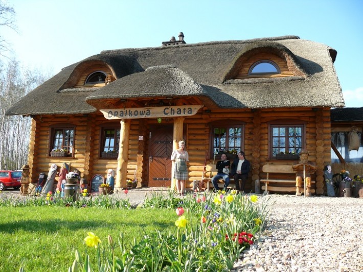 Budynek z bala drewnianego pokryty strzechą, podpiwniczony. Biznes działający nieustannie 19 lat.