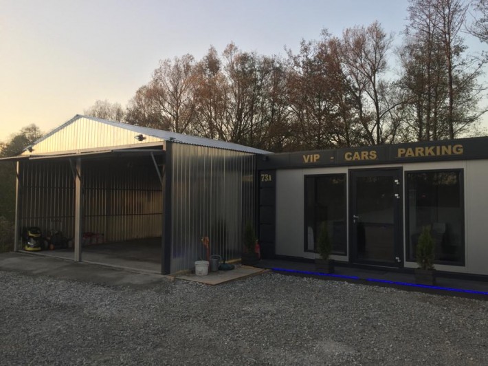 Na placu znajduje się duży garaż blaszany – idealny pod wulkanizację bądź warsztat samochodowy. Jest to dobry biznes do rozkręcenia nie wymagający dużych nakładów czasu. Oprócz parkingu teren wraz z infrastrukturą doskonale nadają się pod innego rodzaju działalność gospodarczą: wynajem i sprzedaż aut, wulkanizacja, warsztat samochodowy.