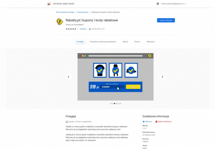 Sprzedam portal z kodami rabatowymi, aplikacja Android, wtyczka do przeglądarki