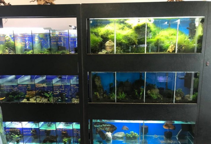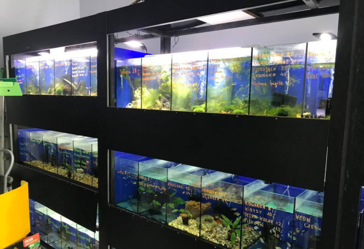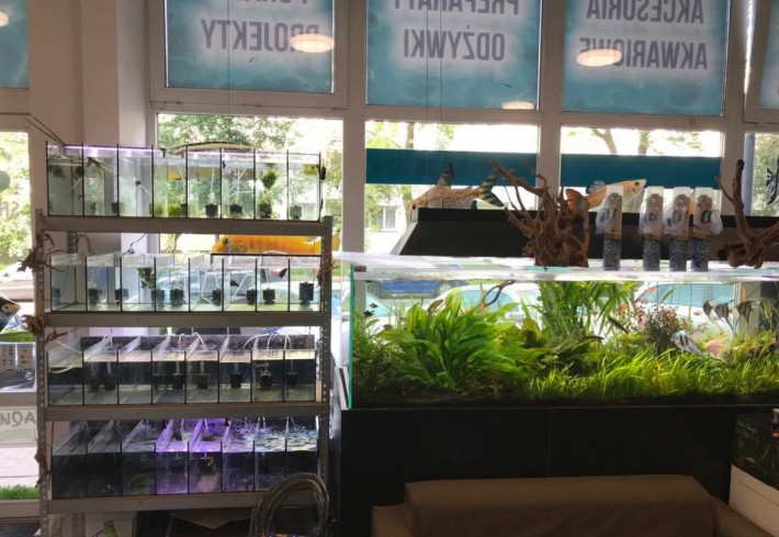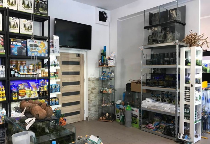 Lokal po remoncie, wyposażony w ok. 70 zbiorników. Akwarium wystawowe wielkości 1000 l. Hodowla krewetek. 3 regały akwarystyczne.