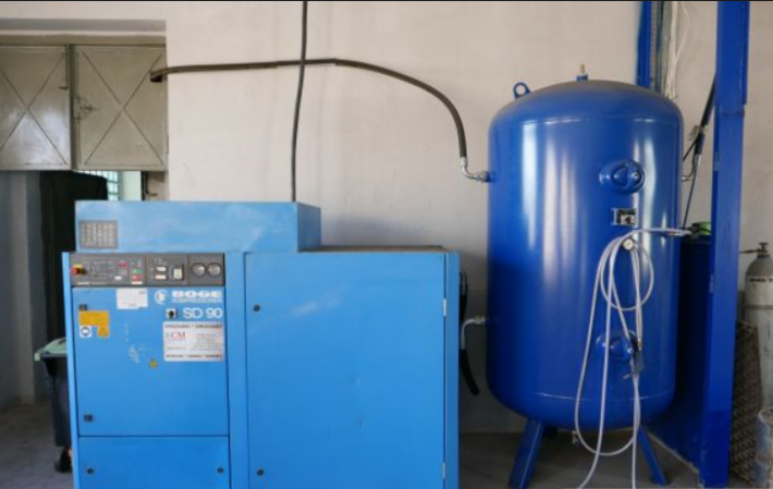 - Kompresora przemysłowego firmy Boge i zbiornika na sprężone powietrze o poj. 2000 L