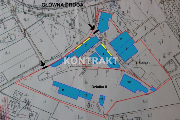 2. Sprzedaż działki 1496/7 o powierzchni 8944 m2 w cenie ofertowej: 2 150 000 mln zł. Ta część obiektu posiada budynek socjalny oraz większość hal, dlatego jest przygotowana na prowadzenie działalności od zaraz. Ponadto posiada również niewielki niezabudowany teren z możliwością dobudowania kilku hal.