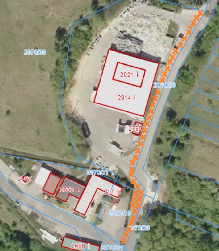 • wagą samochodową z płytą najazdową o powierzchni 65 m2, wraz z segmentem i podjazdem ponadto nieruchomość wyposażona jest w otwarte kanały odprowadzające wody deszczowe , wodociąg technologiczny i do celów socjalnych, zasilanie elektryczne, zbiornik szczelny do gromadzenia ścieków bytowych, drogę dojazdową i drogi wewnętrzne. Teren jest ogrodzony.