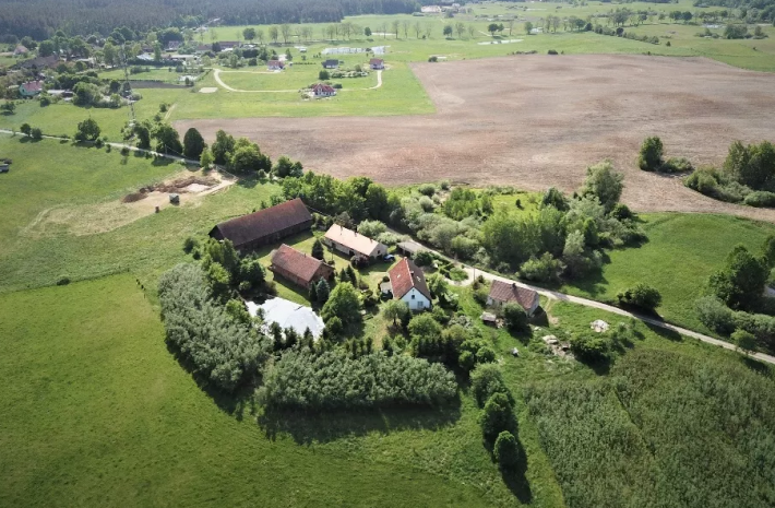 Położone 20 km od Olsztyna, w doskonałym punkcie komunikacyjnym na skraju wsi. Na terenie 1 hektara znajdują się 4 zabudowania (dom mieszkalny (częściowo wyremontowany), dwie obory (jedna z przeznaczeniem mieszkalnym, druga z przeznaczeniem gastronomicznym), zabytkowa stodoła o powierzchni 500m2.
